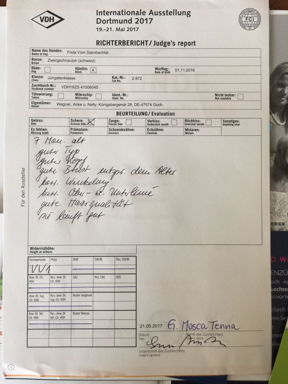 Auch hier hat Frida von Herrn Mosca Tenna ein VV1 erhalten, einfach nur tolle Ergebnisse!
