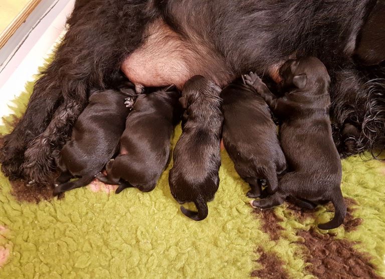 Unsere Zwerge sind am 21.04.2018 gelandet. Es sind 3 Rüden und 2 Hündinnen. Mama und den Welpen geht es bestens!